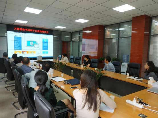 参观期间,岳忠玉介绍了大数据技术实验中心的建设情况,负责实验中心建设的西安启光信息技术有限责任公司信息工程师演示了大数据实验平台的功能及其在教学及科研方面的应用。随后,双方就大数据专业建设、实验室建设等内容深入交换了意见,并针对商科、管理科专业在大数据教学中的需求和侧重进行了充分探讨。