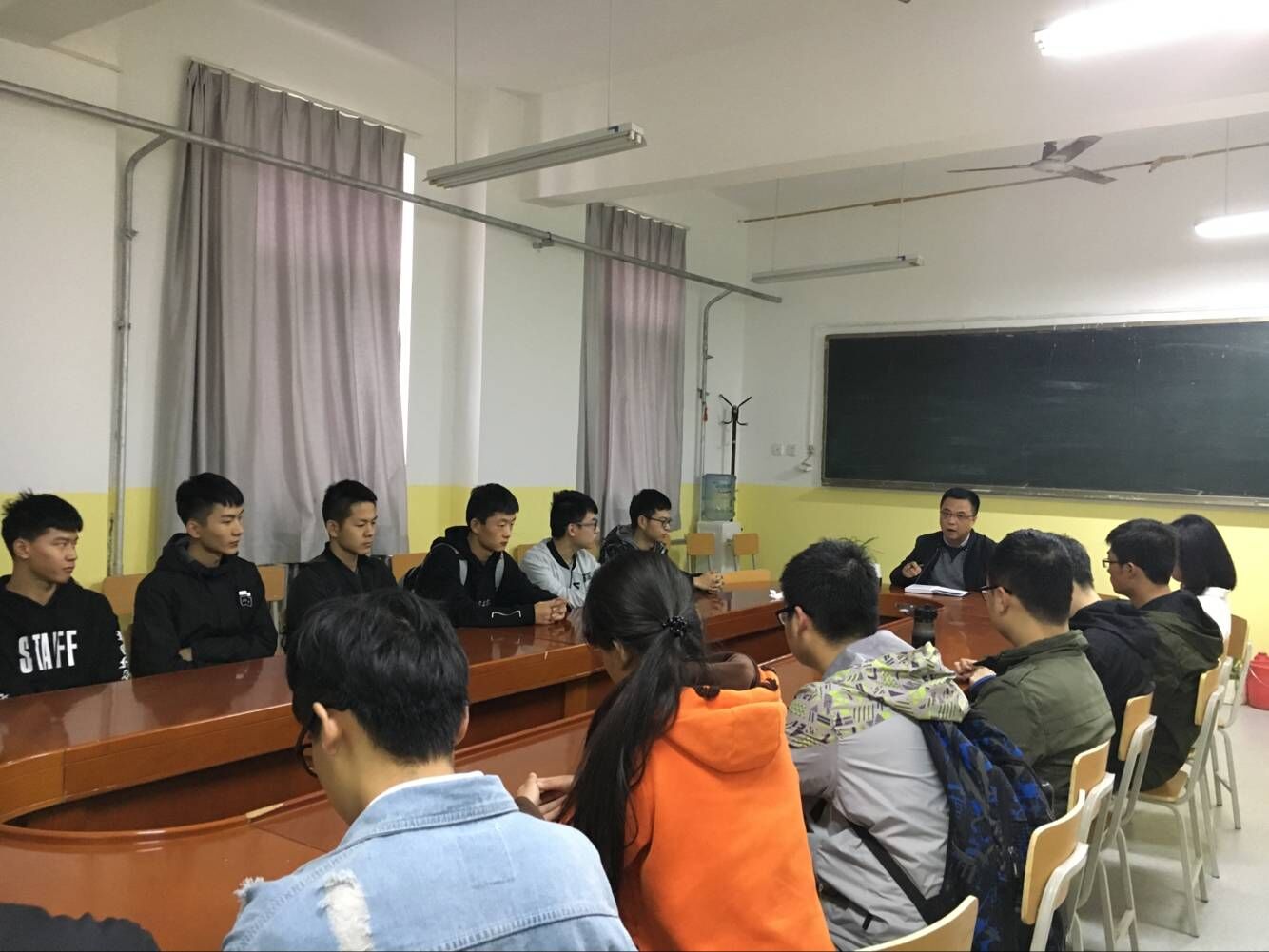 会议开始,首先曹老师向同学们描述了研究生的就业前景以及考研两个字的具体含义,为同学们理清了考研的动机,让同学们更加清晰的认识当今考研的形势。之后每位到场的同学依次发言表示自己理想的学校及专业,并交流了考研复习计划以及复习心得。最后曹老师总结道,Beat365中文官方网站非常重视第一届学生的就业考研等工作,同学们不应为目标而活着,要根据自身的特点制定复习计划以便学院可以更好的帮助到每一位同学。