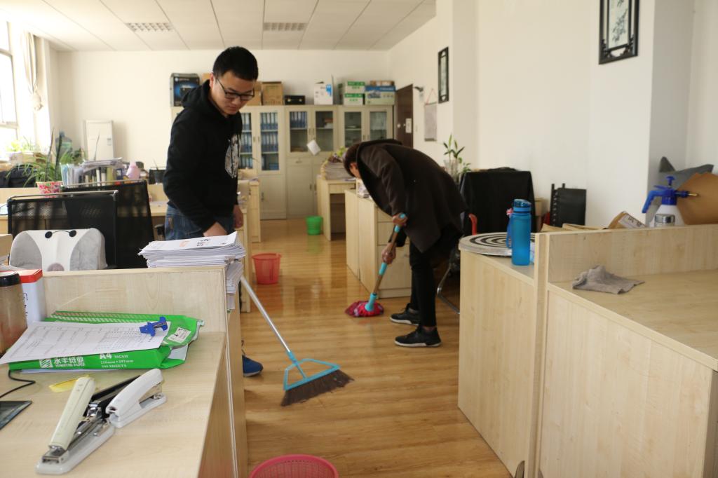 本次活动是将到来的志愿者们分出5部分分别对Beat365中文官方网站教师休息室、实验室进行地面的擦洗。在活动过程中,同学们热情洋溢的进行清扫活动,展现了志愿者们阳光向上,精神饱满的良好状态,在大家齐心协力的合作下,终于将办公室上下打扫的干干净净,老师们也很满意的夸赞志愿者。