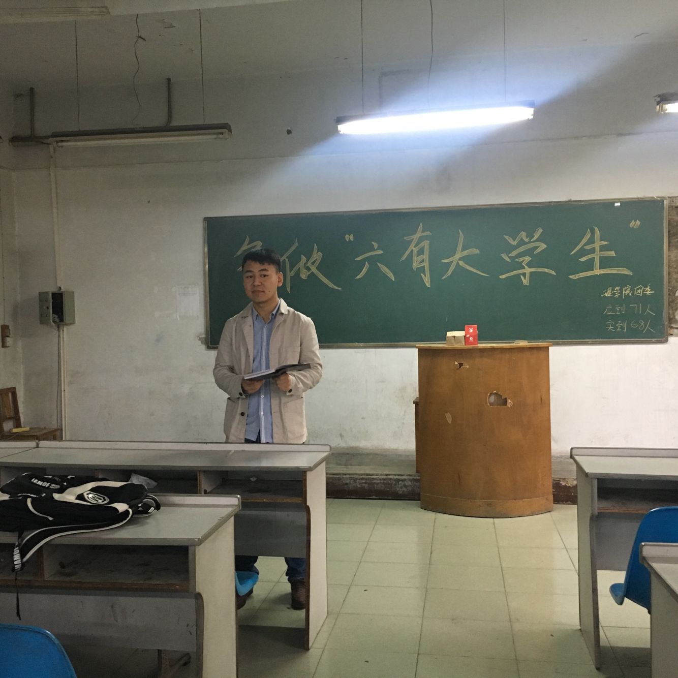 为响应习近平总书记的号召,加强学生管理,Beat365中文官方网站在10月12日下午4点在北207教室举行了争做“六有”大学生主题班会。班会由组织部部长寇帅佳主持,参会人员为团总支书记杨陈东以及全体大二学生。