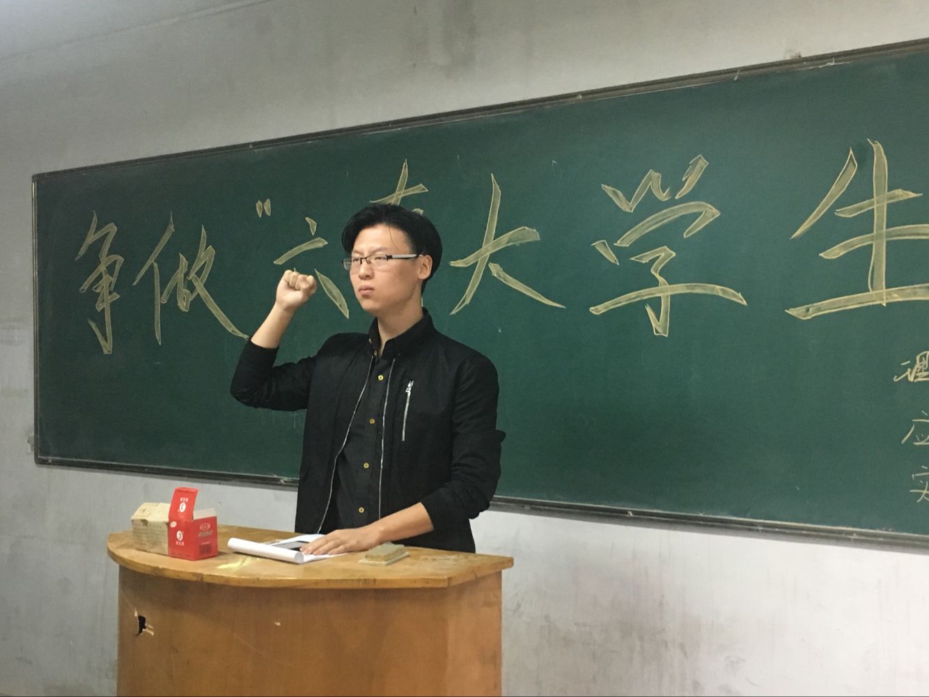 接着杨老师总结发言,他强调同学们应该保持良好的道德品质,在平时生活中讲礼貌,注重细节,在学习的同时不断提升自己的格局,并坚守自己作为学生的底线,坚守学习的初心,努力学习。最后寇帅佳对本次班会做出总结,并组织同学们进行宣誓,此次班会圆满结束。