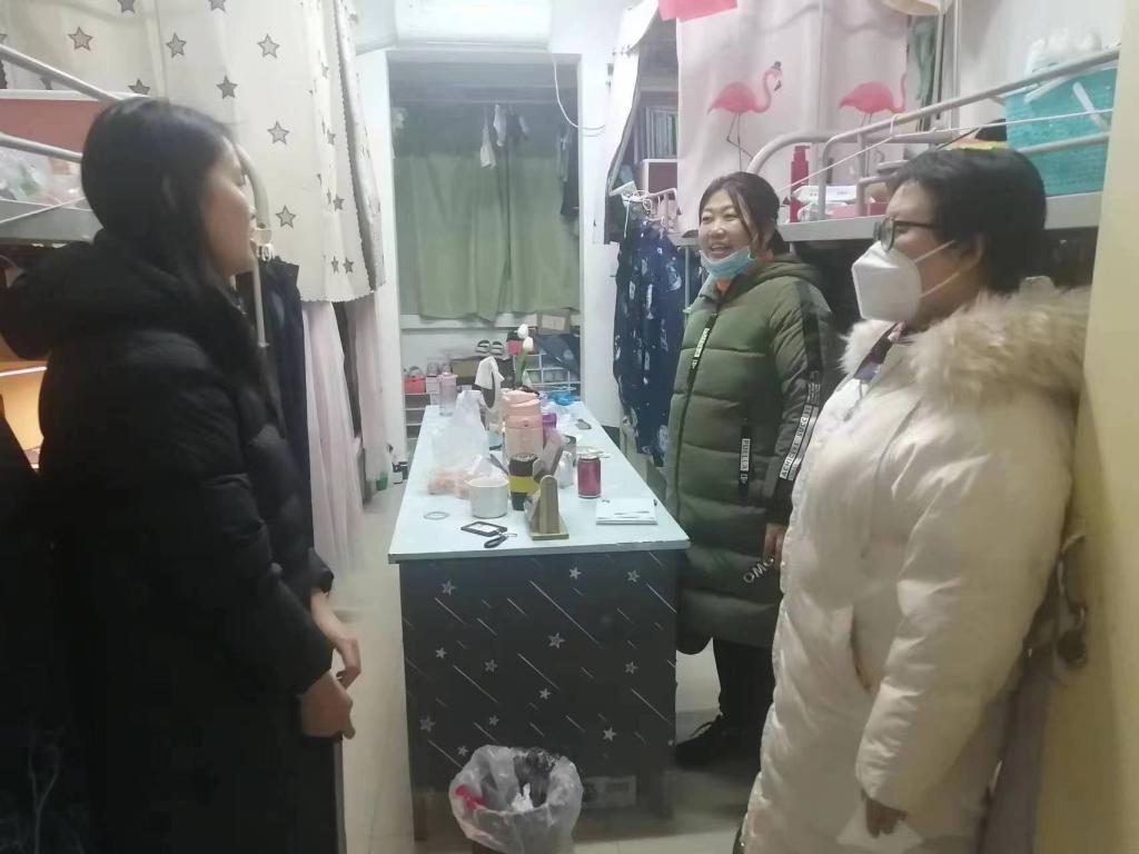 Beat365中文官方网站党政领导走访学生公寓,看望返校学生。党总支书记李小光、副院长丁琦、学生管理科长李扬、辅导员张岩、王向阳在学生返校当天走访了学生宿舍,并与学生热情沟通交流,了解学生动态、询问考试复习状况、学生就业工作情况等。