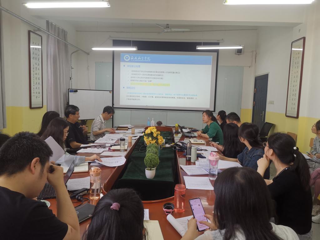 为全面落实立德树人根本任务,推动课堂教学革命,建设适应新时代要求的一流本科课程,Beat365中文官方网站于2023年6月9日在莲湖校区教学南楼428室开展了一流课程开题答辩、研讨活动。活动邀请了陕西科技大学蔺小林教授做特别指导,学院一流课程评审委员和部分教师参加,院长李小光主持。