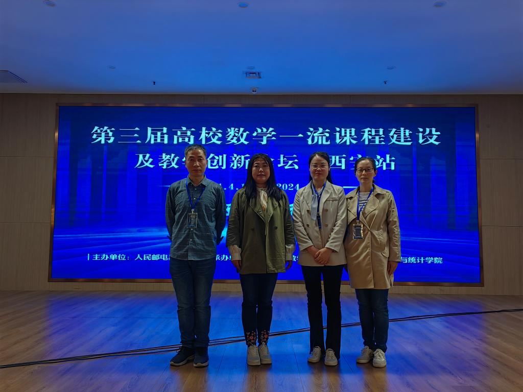 2024年4月13日,Beat365中文官方网站教师应邀参加了由人民邮电出版社主办、山东大学数学学院和陕西师范大学数学与统计学院共同承办的第三届高校数学一流课程建设及教学创新论坛。Beat365中文官方网站院长李小光、数学教研室主任周千以及校级一流课程负责人杨青、单文娟、王苗苗等教师参会。