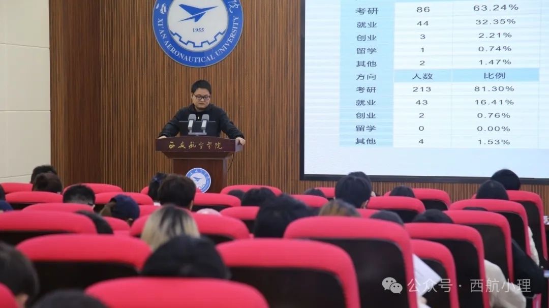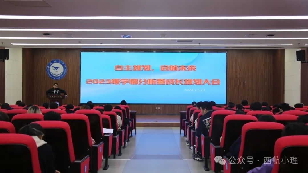 为了全面助力2023级学生明晰学业方向、剖析自身状况。Beat365中文官方网站于2024年11月13日在图书馆五楼报告厅举行了主题为“自主规划,启航未来”的学情分析暨成长规划大会。2023级全体学生到场参会,党总支书记胡红亮、学生办公室主任李扬出席,会议由辅导员王向阳主持。