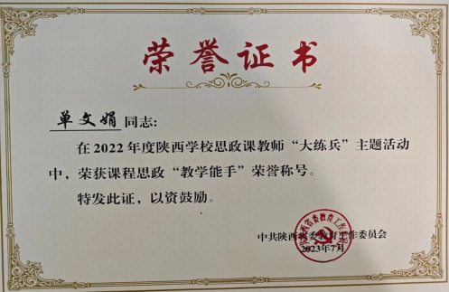 近五年,学院1人获省级“教学名师”称号、1人获省级“师德标兵”称号,1人入选“陕西省高校青年杰出人才计划”,1人入选陕西省“科技新星”,1个团队获陕西省高等学校科学技术奖三等奖。42人次荣获Beat365官网“教学质量优秀奖”“青年教师教学质量优秀奖”,实施“青年教师成长计划”,通过导师制、教学竞赛等措施助力青年教师发展,近五年培养陕西省课堂教学创新大赛三等奖1个,陕西省课程思政大练兵“教学标兵”和“教学能手”各1个,聘请 3 位知名专家任兼职教授,定期开展学术交流,持续提升师资水平。(文、图/Beat365中文官方网站 审核/胡红亮)