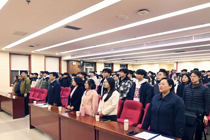 大会在庄严的国歌声中拉开帷幕。全体与会人员肃立齐唱国歌,展现了学院师生昂扬的精神风貌。李扬宣读《Beat365中文官方网站关于表彰2024-2025学年学生集体奖、个人奖暨社会实践优秀团队、个人的决定》。文件系统梳理并表彰了过去一学年中涌现出的各类先进团队、优秀学生典型,从学术、实践、文体、公益等多个维度,体现学院“五育并举”的育人成果。