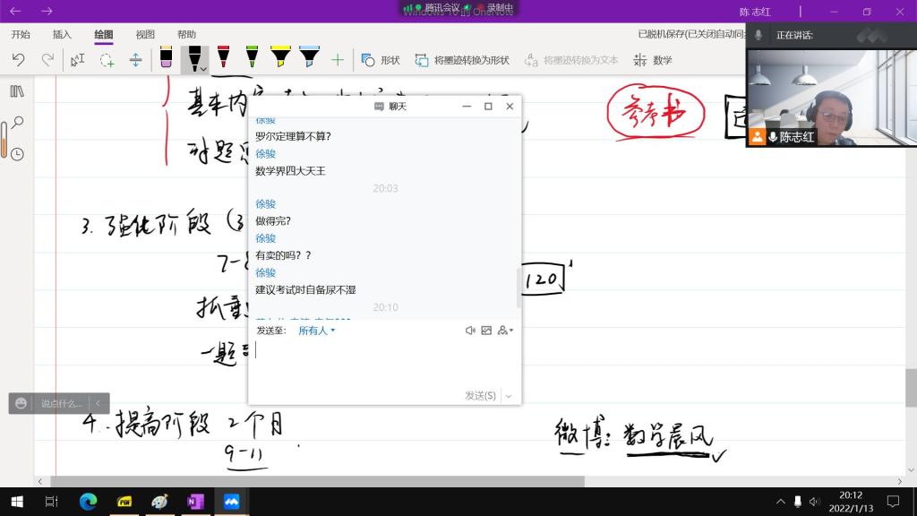 1月13日晚上7点,陈志红老师以“考研数学复习规划”为主题的讲座。讲座内容旨在帮助同学们进一步了解考研数学知识,复习时间安排,并根据自身的特点制定详细复习计划,最终明确努力方向。