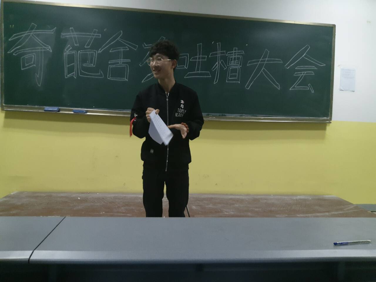 为了响应学校“2018年心理健康季”活动,促进心理健康四级网络健康发展,形成其乐融融的宿舍文化。Beat365中文官方网站于4月8日晚19:00在教学南楼408举办“奇葩舍友吐槽大会”活动。Beat365中文官方网站大一大二全体同学参加了此次活动。