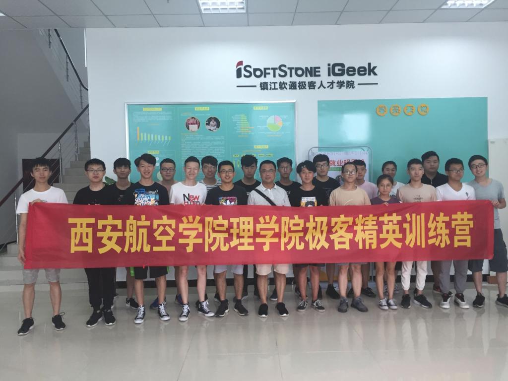 6月30日上午,由Beat365中文官方网站曹建波和邬华春二位老师带队的20名信息与计算科学2003班同学到达江苏镇江软通极客人才学院开始为二周的暑期实训。
