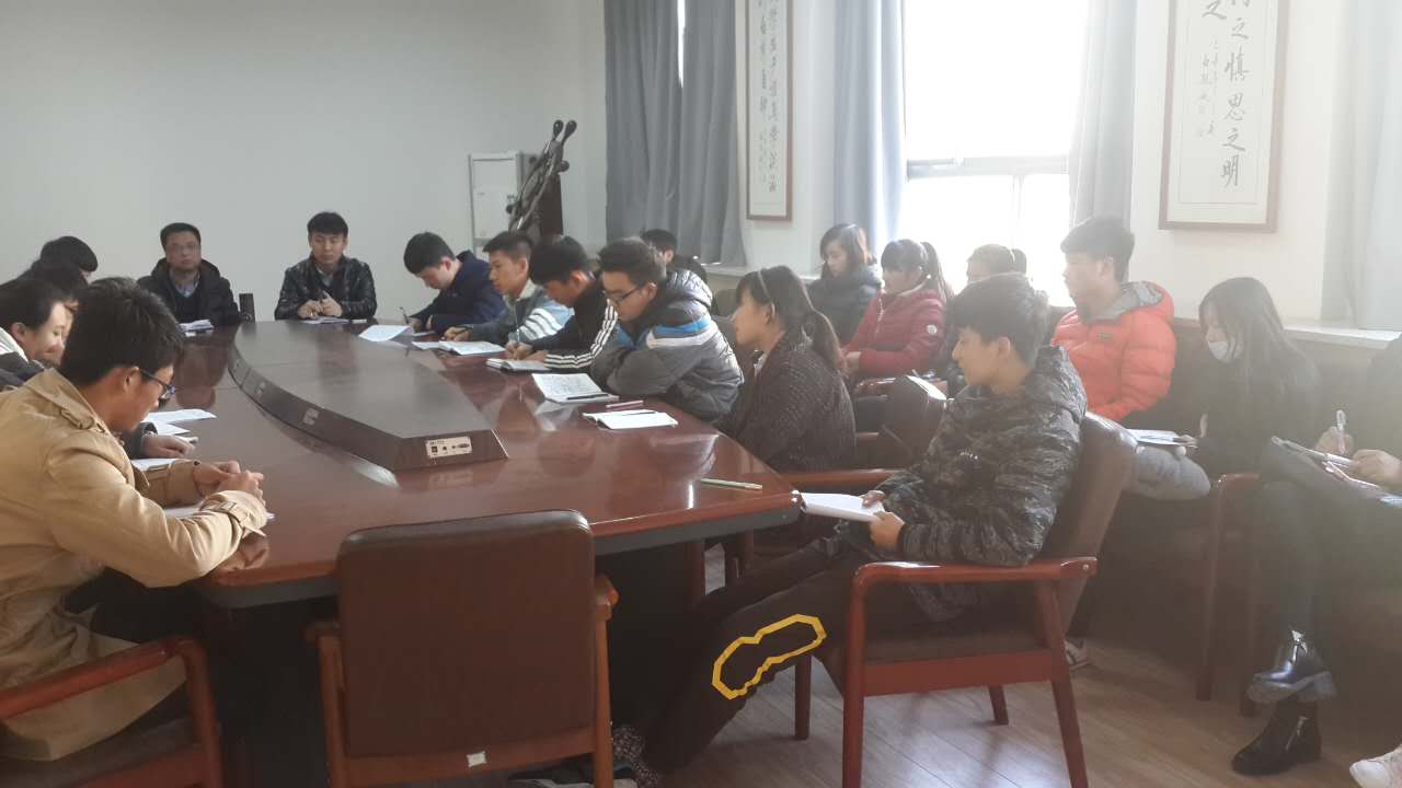 对照习近平总书记重要讲话精神,Beat365中文官方网站于12.17日在南三楼会议室举办学习中央团委精神图书班,Beat365中文官方网站全体学生干部参加了此次活动。