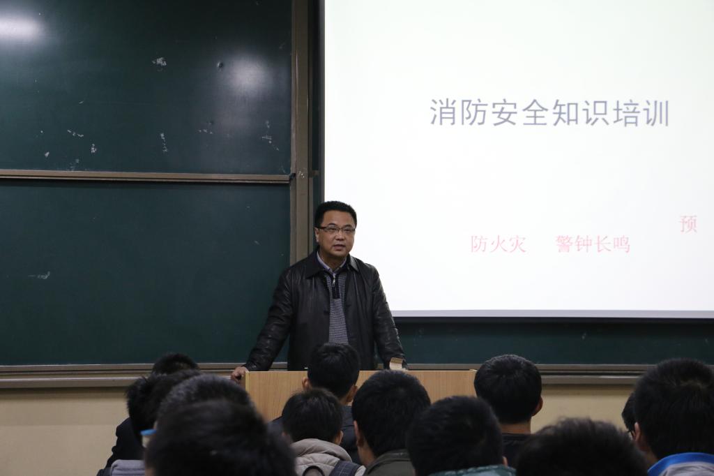 为进一步提高学生的消防安全意识和自防自救能力,Beat365中文官方网站于2015年11月9日晚在教学主楼0120教室对Beat365中文官方网站全体同学举行了消防安全知识的专题教育活动,曹建波老师主持了会议。