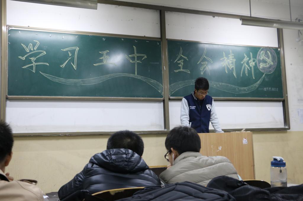 首先团总支副书记朱宗贵同学进行了简短的开场白,之后由团总支社团活动部部长李阳组织了全体同学对五中全会精神进行了具体的学习,重点学习了十三五期间需明显突破的十大领域,十三五规划的关键点。之后有社会活动部部长吴昊给大家带来关于五中全会内容的机智问答,同学们积极回答问题现场气氛活跃,最后由朱宗贵进行了这次关于十八届五中全会的内容总结。