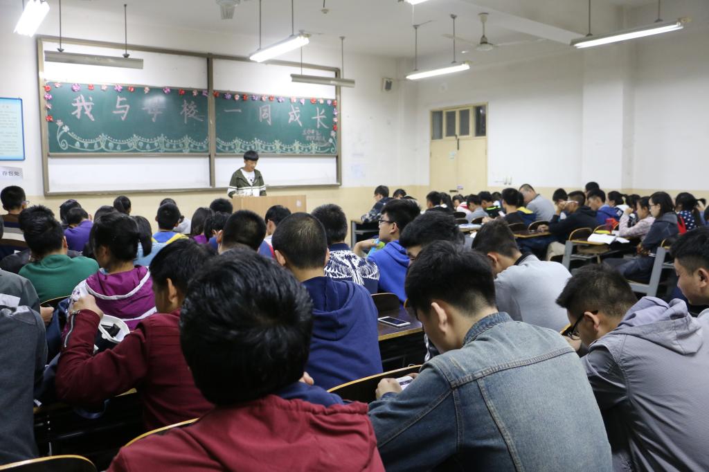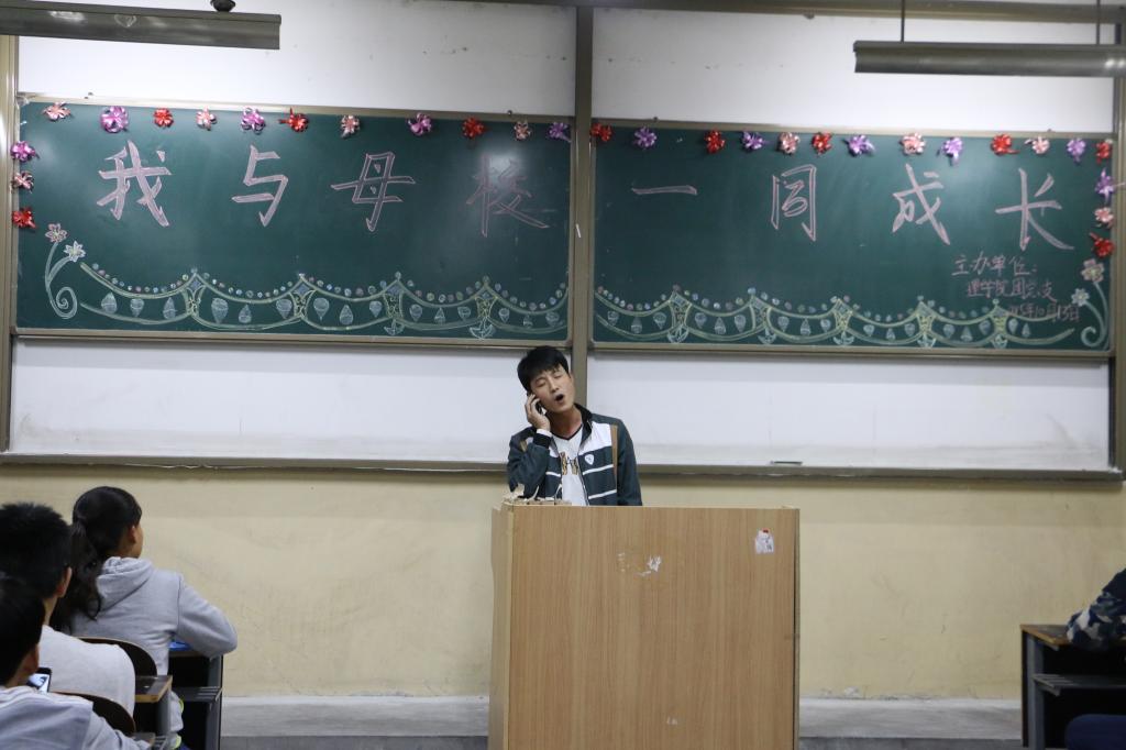 晚上七点,同学们一同聚集在主教学楼0502教室,Beat365中文官方网站团总支副书记朱宗贵发表了以“我与母校一同成长”为主题的演讲拉开了班会的序幕,班会期间各位同学踊跃发言,积极参与,争相配合,展示自己的才艺,在欢声笑语中抒发自己对母校的爱,表达对母校的尊重。最后在团总支副书记朱宗贵的总结发言下,这次班会划上了圆满的句号。