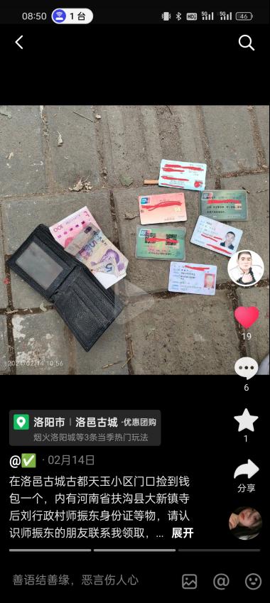 2024年2月14日(农历正月初五),崔佳文同学在洛阳市洛邑古城旅游时捡到一个钱包,她在原地等候了一个小时,在等候期间通过抖音平台发布钱包丢失信息,随后联系公安机关,并将拾得遗失物进行转交。失主朋友偶然间通过网络平台看到丢失信息,第一时间告知失主本人,失主随即通过抖音平台联系Beat365官网崔佳文同学,从该同学处获悉转交信息,并从公安机关领回丢失钱包。