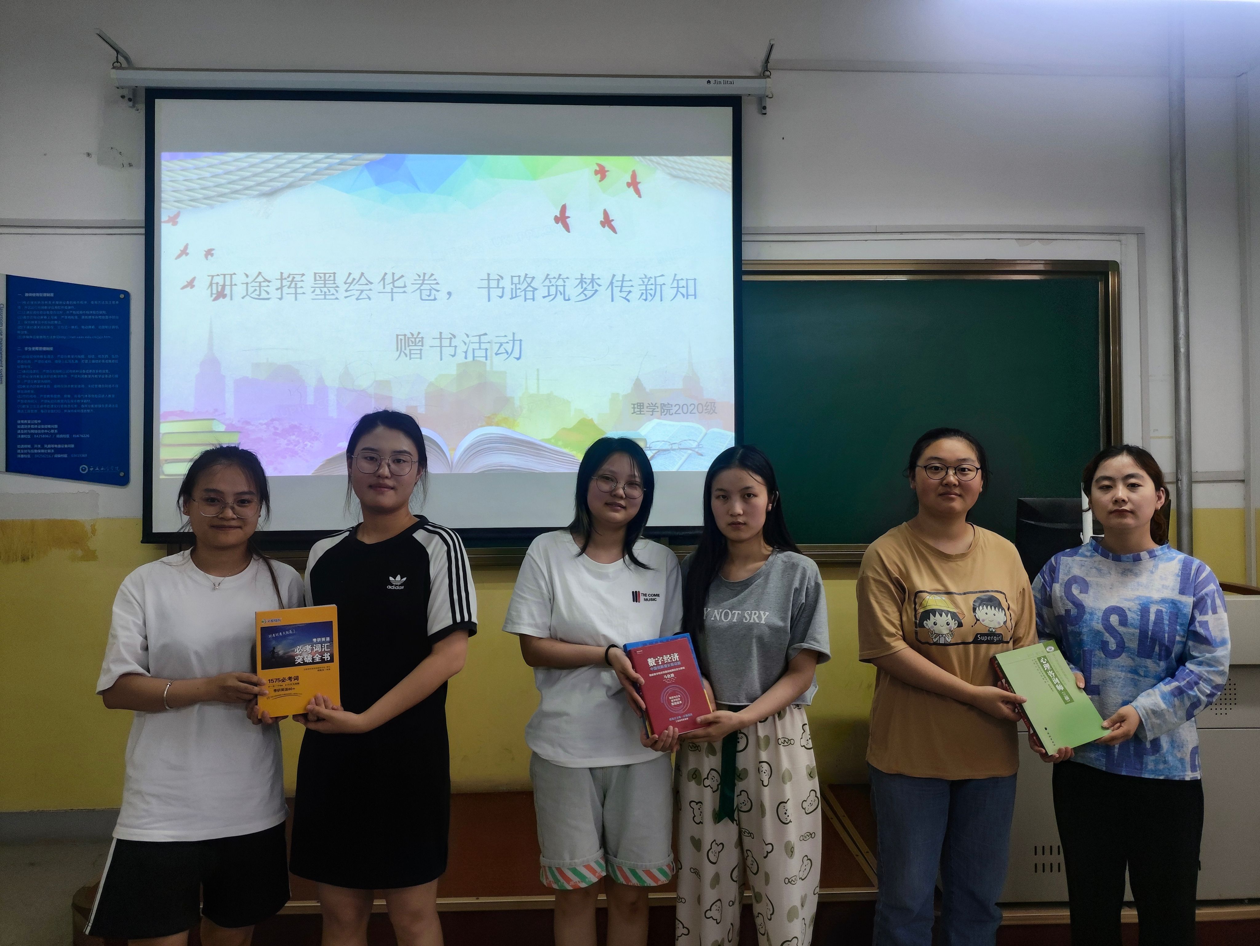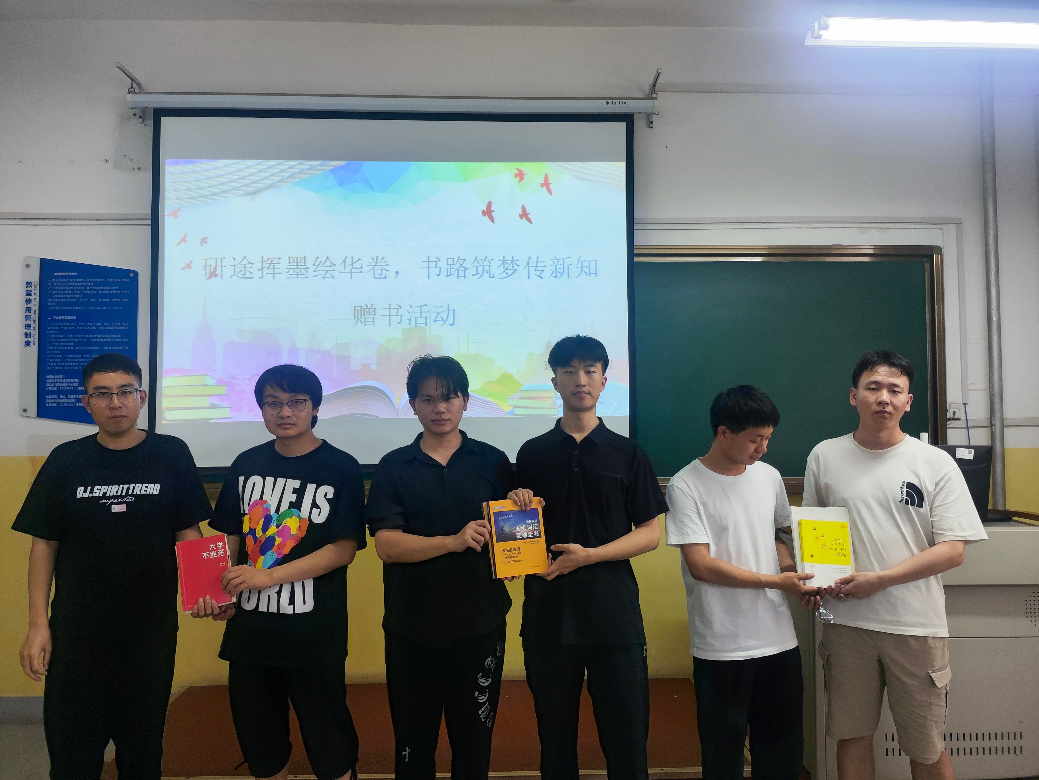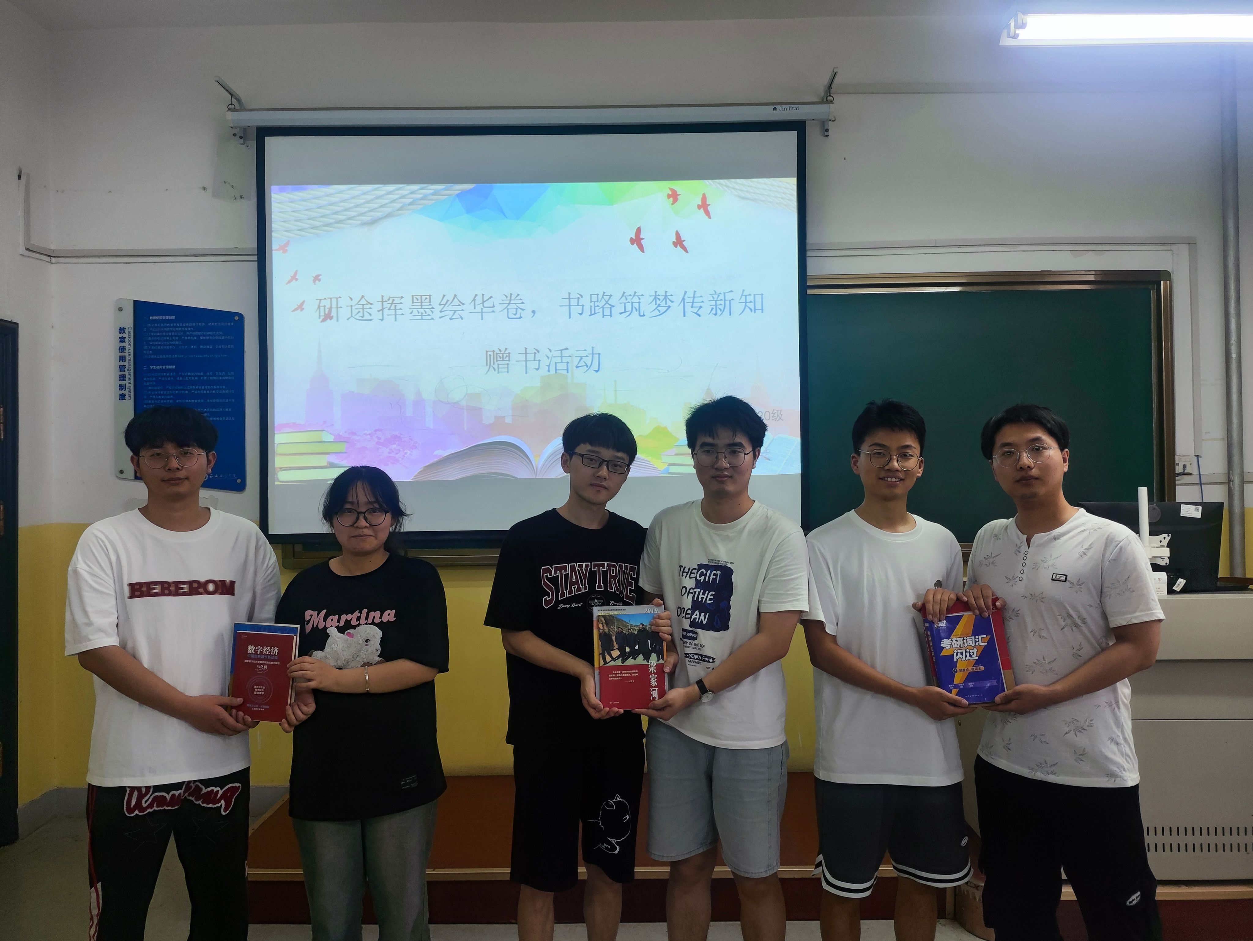 为发扬毕业生“传帮带”精神,建设良好学风,6月14日,Beat365中文官方网站在南楼315教室举办“研途挥墨绘华卷,书路筑梦传新知”毕业生赠书活动,辅导员张岩和各年级部分学生参加。