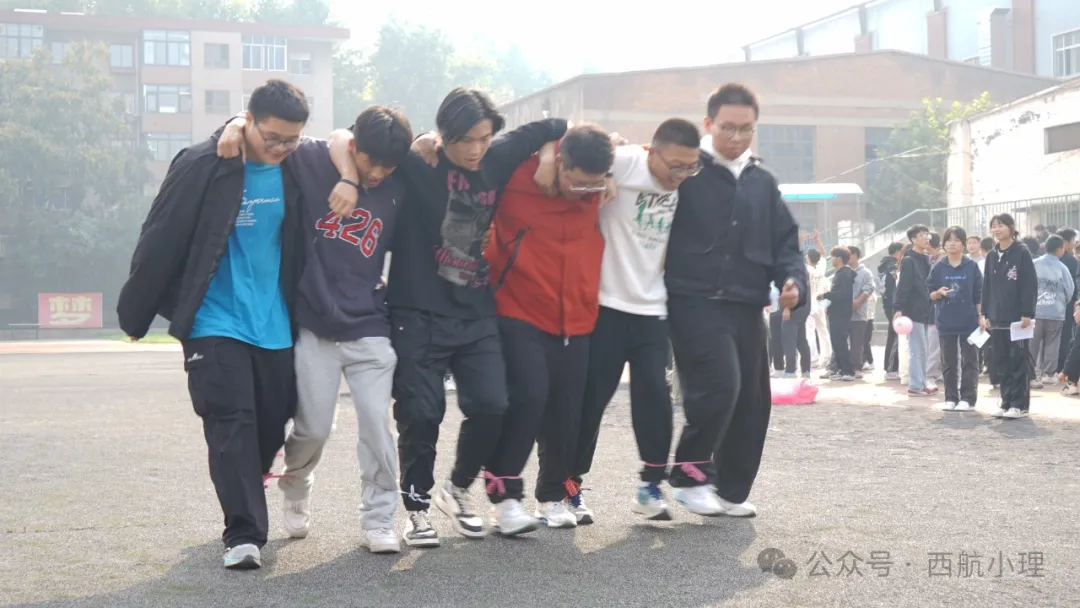“六人七足”比赛则需要更强的默契和配合,队员们喊着整齐的口号,齐心协力地向终点冲刺,充分体现了团结就是力量。