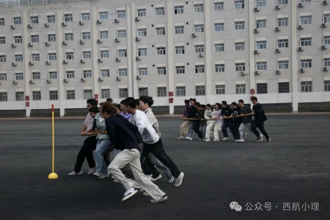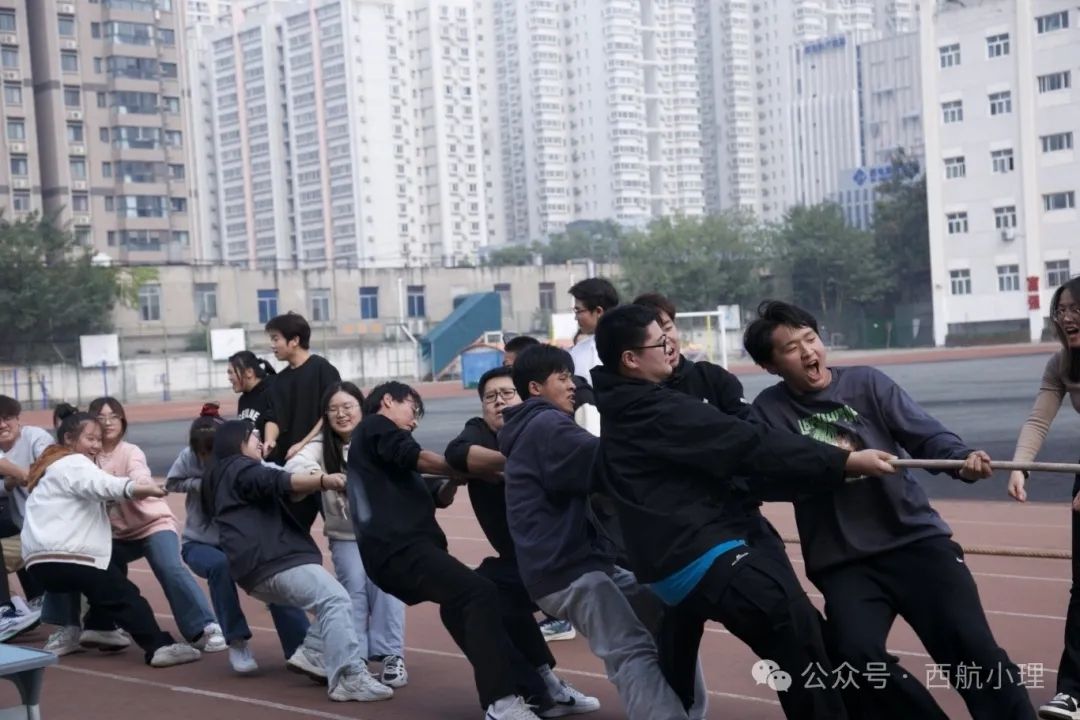 “集体拔河”项目紧张刺激,需要力量与智慧的加持,各班级团体成员们共同努力,激发了极强的团体凝聚力。