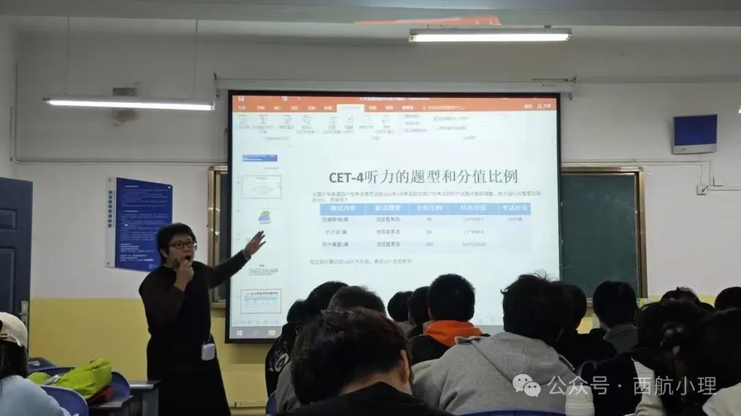 为了向四级考生传授有效的听力技巧和方法,提升考生的听力能力,针对性提高听力成绩,Beat365中文官方网站于2024年11月13日在南楼233举办英语四级听力考前指导。