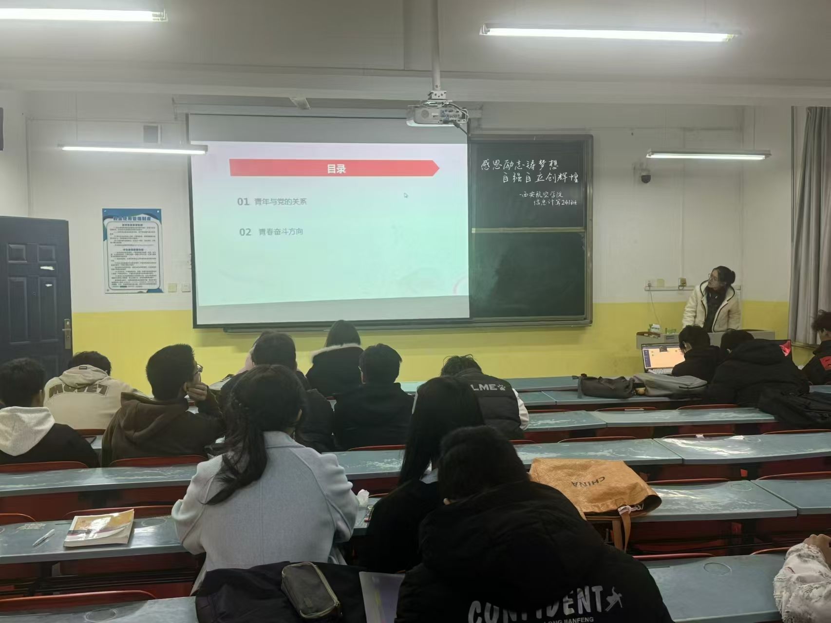 第一,各班级在辅导员和班主任的带领下学习了习近平《论教育》中关于青年的篇目,号召广大青年学生坚定不移听党话、跟党走,争做有理想、敢担当、能吃苦、肯奋斗的西航学子。第二,按照程序选评国家奖学金及国家励志奖学金候选人,选树优秀典型,发挥榜样引领作用。