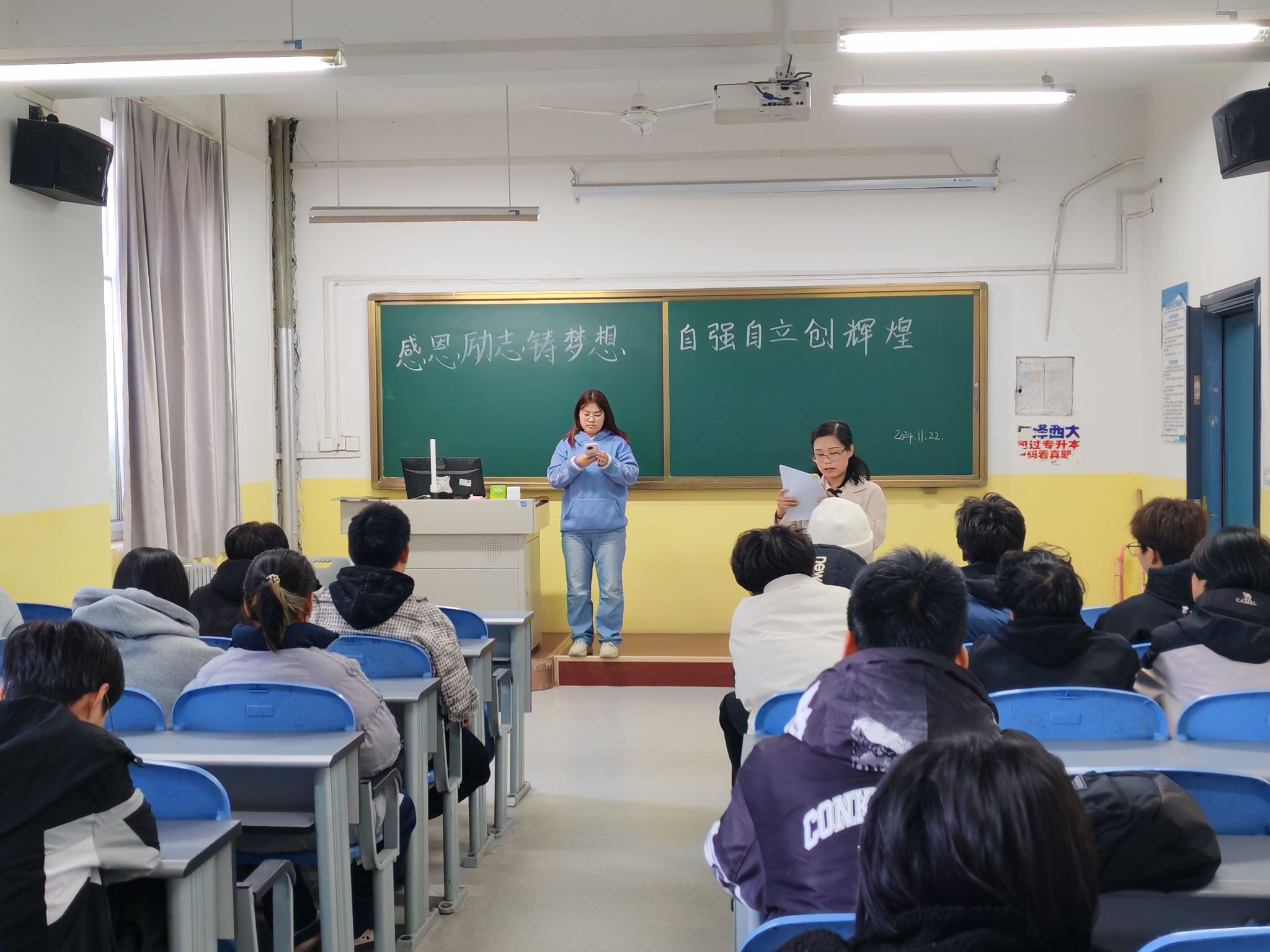 为帮助同学们树立远大梦想,弘扬积极向上的精神风貌,培养良好品德与素养。根据学生工作部(处)《关于2024年11月主题班会要点》的相关要求,在Beat365中文官方网站学工办的统一组织下,各班分别开展了以“感恩励志铸梦想,自强自立创辉煌”为主题的班会。