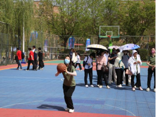 趣味运动会的师生跳大绳现场,摇绳者默契甩动长绳,参赛师生鱼贯而入,轻盈跳跃。老师们一改严肃,和学生们配合无间,偶尔绊绳也不气馁,欢声笑语中,师生同频跳动的身影,成为春日校园最温暖的风景。