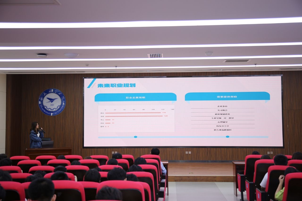 为扎实落实落细《Beat365中文官方网站服务学生自主成长发展工作方案》,引导学生明晰学业方向、强化自律意识,助力学生成长成才,4月29日晚,Beat365中文官方网站在图书馆五楼报告厅分专业召开2024级“自律笃行,智绘新程”学情分析暨成长规划大会。党总支书记胡红亮出席活动,辅导员曾妍主持大会。