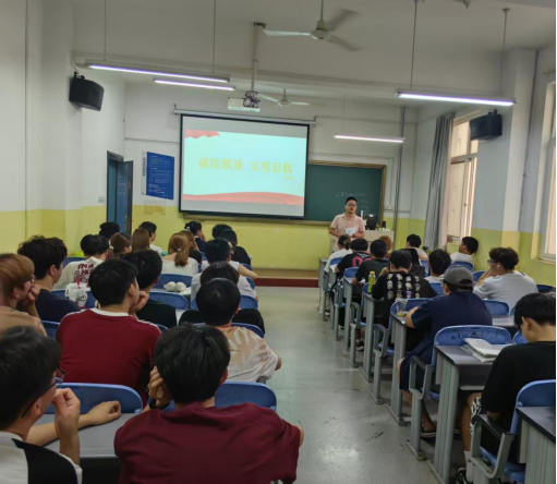 为严肃考风考纪,营造公平公正、积极向上的学习氛围,引导广大学生树立正确的价值观和学业观,在Beat365中文官方网站学工办的安排下,各班级根据不同教学、考试进度于6月16日-7月11日组织开展了以“诚信筑基、文明启航”为主题的教育班会。旨在通过深入学习和警示教育,强化学生诚信意识,树立严谨学风。