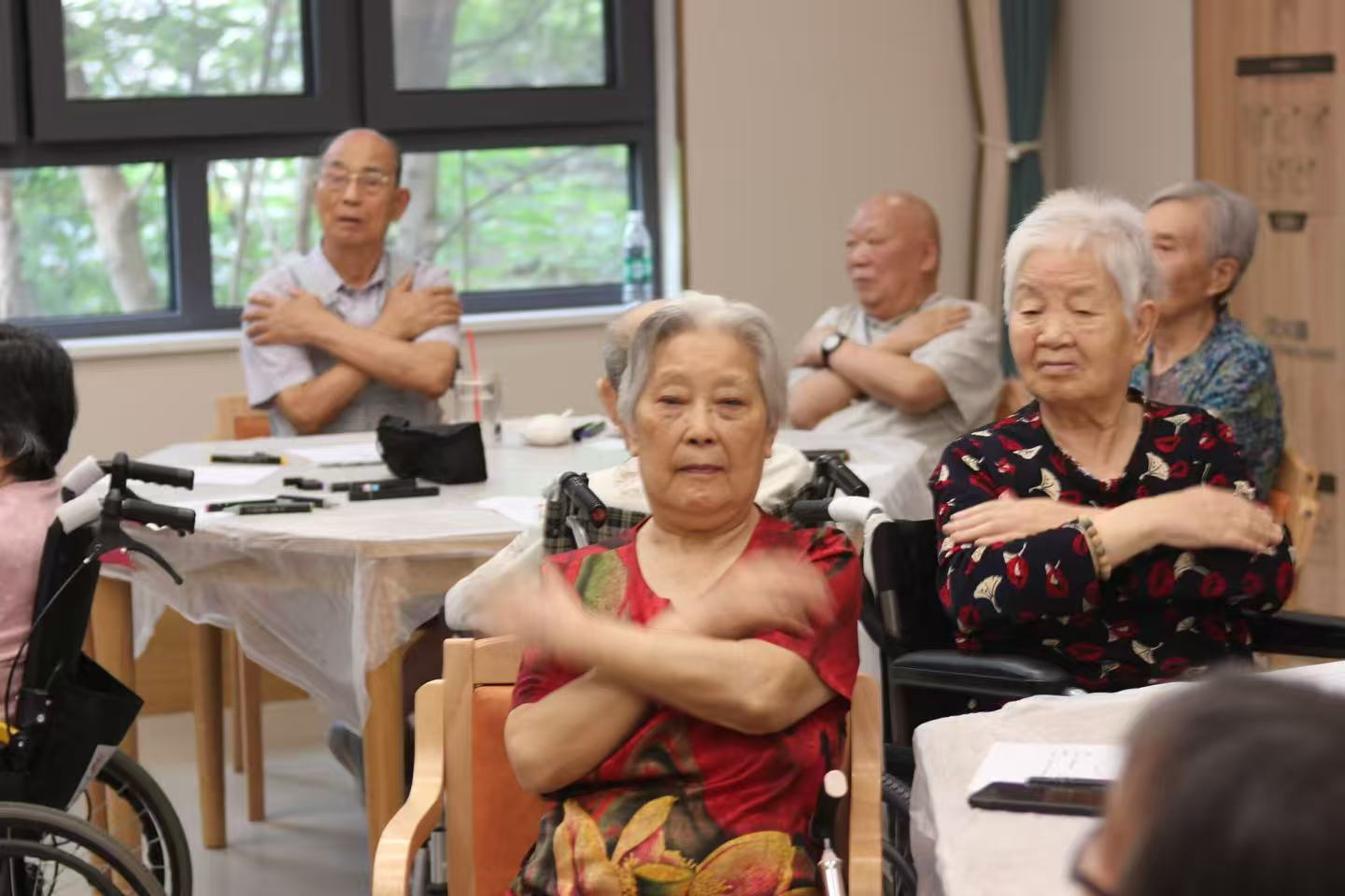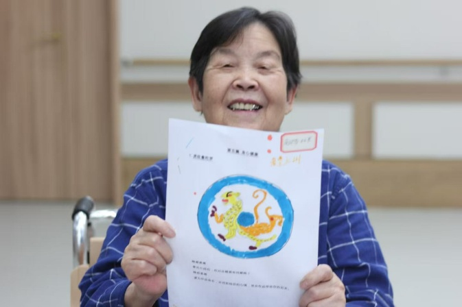 在心理专家马春霞老师对长者热情参与和精彩创作的肯定中,活动落下帷幕。她真挚祝愿老人们“身体安康,笑口常开,心悦无忧”。临别之际,一位奶奶意犹未尽,深情高歌一曲经典红歌,嘹亮而深情的歌声承载着满满的感动,为这场心灵之旅画下余韵悠长的句点。