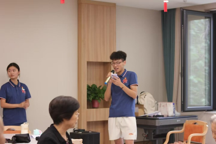 “击鼓传花”的欢快节奏瞬间点燃现场,笑语盈堂间,彼此的距离悄然拉近。实践队员清澈的歌声赢得了阵阵掌声,90岁高龄的姜爷爷一句“身体没毛病,健健康康,没麻烦!”的爽朗宣言,更是引来满堂喝彩,传递着乐观的生命力量。