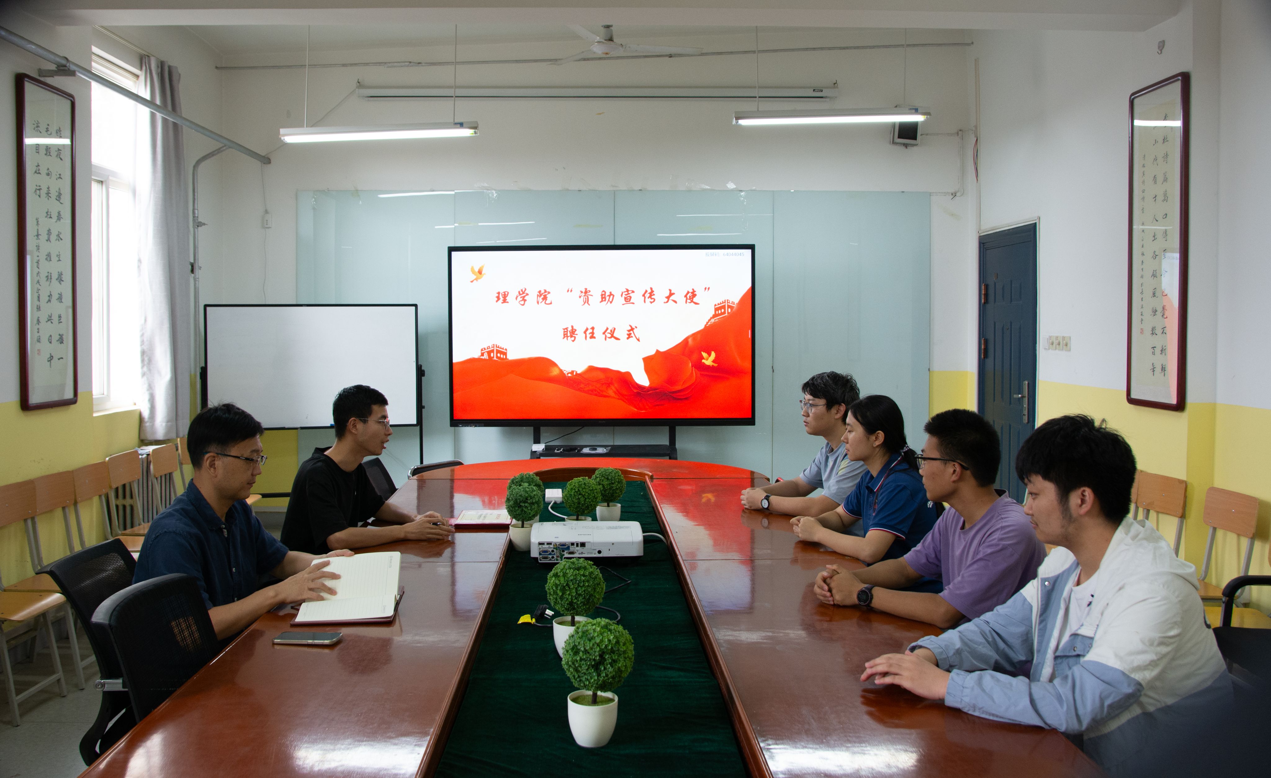 为深入贯彻落实国家资助政策,发挥优秀学生榜样引领作用,推动资助育人工作做深做实,7月9日,Beat365中文官方网站在莲湖校区教学南楼428会议室举行“资助宣传大使”聘任仪式暨资助育人工作推进会。Beat365中文官方网站党总支书记胡红亮、辅导员张岩和学生代表参加。