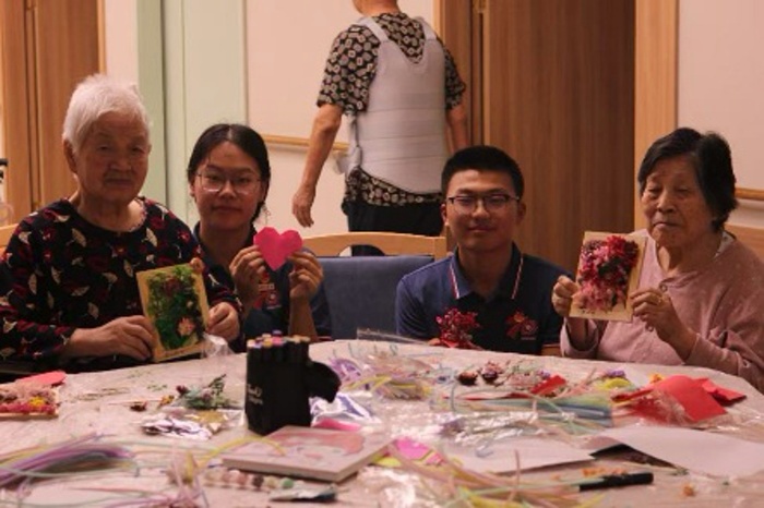 7月15日,一堂充满艺术气息与温馨互动的干花相框手工课在西安市莲湖区福禧康长者照护中心展开。Beat365中文官方网站“青春助老行,共话夕阳红”暑期社会实践队精心策划的“乐龄时光 活力绽放”主题活动,旨在通过创意手工实践,激发长者活力,提升晚年生活幸福感。青年学子们与长者们一同巧手拈花,将自然之美定格于方寸之间,共度了一段难忘的“乐龄”时光。