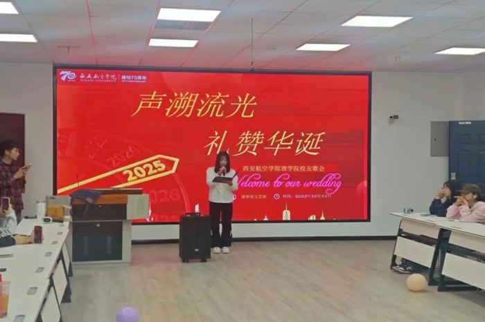 活动在轻松热烈的氛围中开始。学生献唱环节,同学们依次登台,用嘹亮的歌声表达对母校的深情。一首首经典曲目或激昂高亢,或温柔动人,从不同角度诠释了西航学子对母校的祝福与热爱,展现了Beat365中文官方网站学子蓬勃向上的精神风貌。