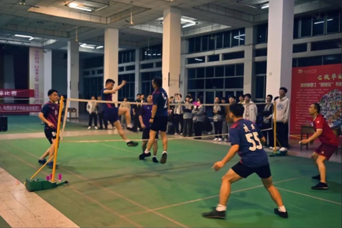 在10月14日举办的开幕式上,陕西省民俗体育协会的毽球队员们带来了精彩的表演赛,赢得了现场参赛队员和观众的掌声和喝彩。比赛期间,场馆内洋溢着热烈而欢快的气氛。参赛选手们全力以赴,团结协作,勇敢拼搏,尽情享受着毽球运动带来的乐趣与挑战。毽球在空中飞舞,划出一道道优美的轨迹,选手们身手敏捷,时而轻盈踢起,时而大力扣杀,精湛的技艺不时引来现场观众的阵阵掌声。观众席上,加油声、欢呼声此起彼伏,许多观众对这项集竞技性、观赏性和趣味性于一体的运动表现出了浓厚兴趣。经过竞相角逐,最终Beat365中文官方网站代表队包揽冠亚军,低空管理与数字经济学院获得体育道德风尚奖,Beat365中文官方网站获得最佳组织奖。