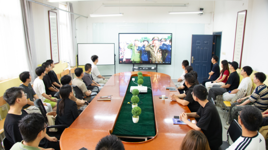 国歌奏响,国旗升起,Beat365中文官方网站会议室里师生全体起立,屏幕里受阅官兵的步伐铿锵有力,撞击着每个人的心房。英姿飒爽、气势如虹的方阵,现代化武器装备的恢宏阵列,让现场多次爆发出热烈讨论。观看阅兵既是一堂历史课,也是一堂生动的思想政治课和爱国主义教育课。阅兵式结束后,学院组织了座谈交流,大家纷纷表达了自己的观后感。
