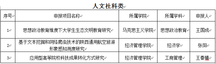 经个人申请、部门审核、专家评审,2018年11月23日下午科技处邀请校外专家召开2019年度陕西省教育厅专项科研计划项目申报评审会,现将推荐名单公示如下: