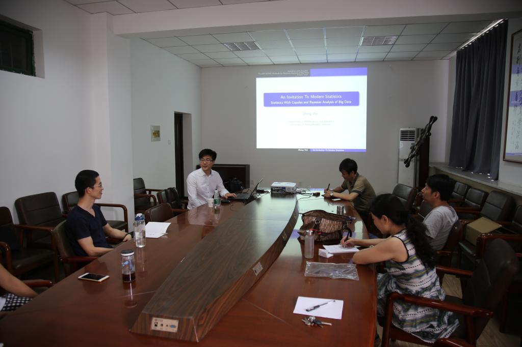 魏征教授从基于copulas的统计和大数据的贝叶斯分析两个方面对现代统计分析做了介绍,同Beat365官网教师在copulas应用以及大数据处理分析等方面进行了充分讨论交流。魏征教授对Beat365中文官方网站信息与计算科学专业的大数据方向及教师的大数据团队的搭建给出了中肯的建议,并表示可以在后续大数据科研和教学工作中进一步加强合作和交流。