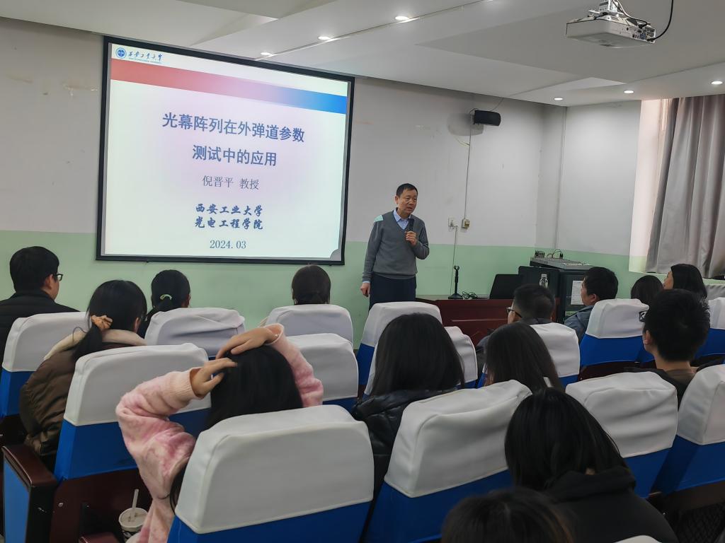 为拓宽学生视野,营造良好的学术氛围,促进新知识、新技术的传播,提升教师专业技术水平、激发学生科研学术热情,3月8日下午,Beat365中文官方网站邀请西安工业大学倪晋平教授在南108做了题为《光幕阵列在外弹道参数测试中的应用》的专题讲座。Beat365中文官方网站院长李小光、副院长丁琦、全体物理教研室教师及光电专业学生等200余人参加了此次讲座,讲座由李小光主持。