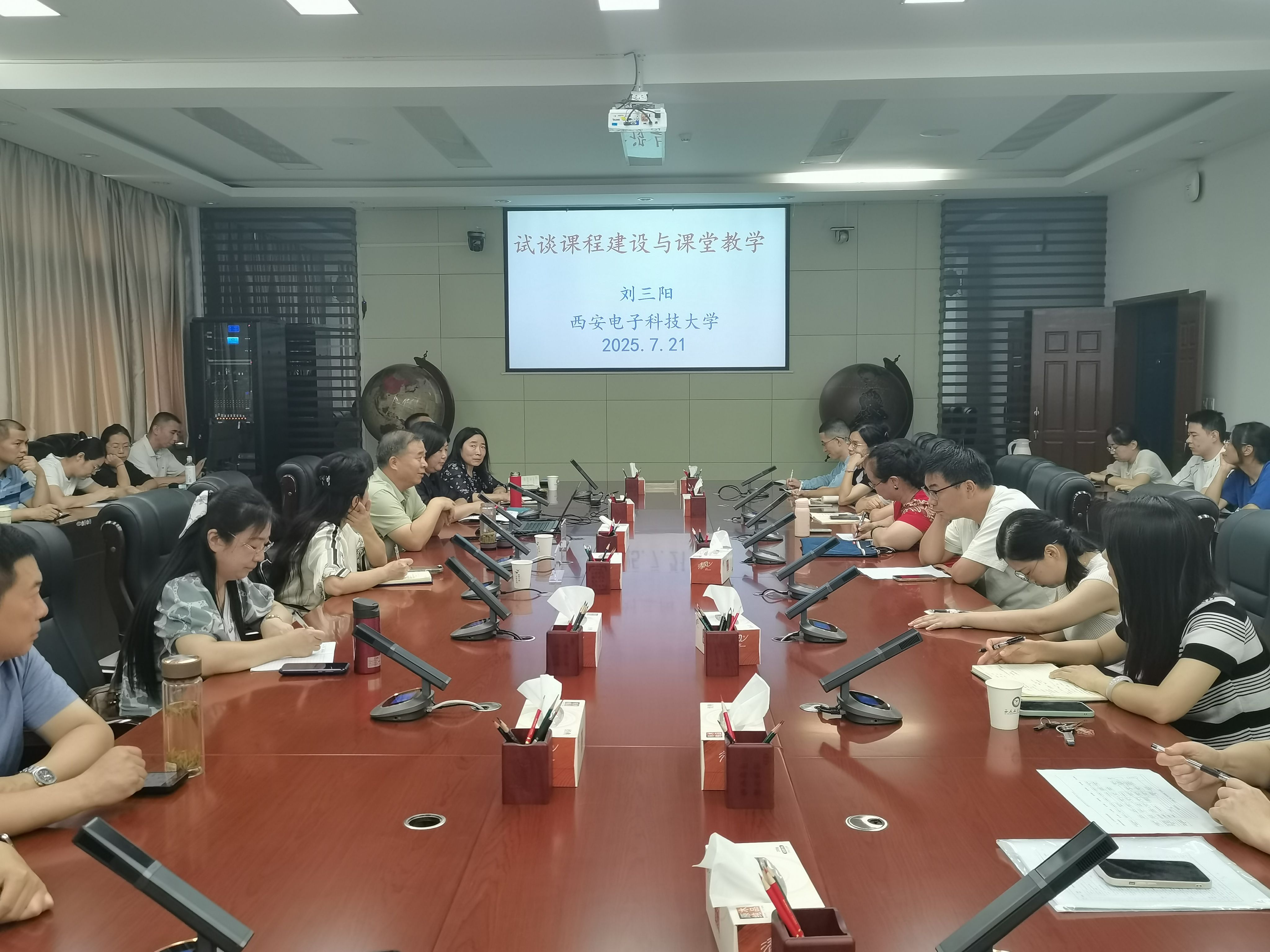 7 月 21 日上午,西安电子科技大学教授、博士生导师、国家级教学名师刘三阳教授莅临Beat365官网,带来题为《浅谈课程建设与课堂教学》的专题报告。校工会主席陈冬梅与众多教师到场聆听,报告由Beat365中文官方网站院长李小光教授主持。