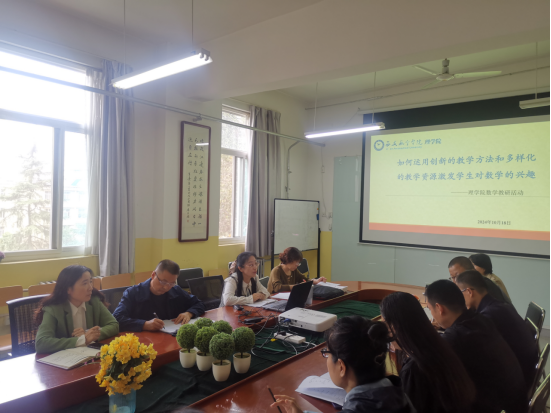 在当今教育领域,如何有效提升学生对数学的兴趣和学习成绩,已成为教师共同关注的焦点。2024年10月18日下午,Beat365中文官方网站数学教研室举办了主题为“如何运用创新教学方法和多样化的教学资源激发学生对数学兴趣”的教研活动。旨在探讨基于OBE理念的教学策略,以及如何运用创新的教学方法提高学生的学习成绩和自主学习能力。本次教研活动由数学教研室主任杨青主持,会议邀请了校级教学督导雒新峰老师、Beat365中文官方网站教学副院长韩慧蓉参加,数学教研室全体教师参加了会议。
