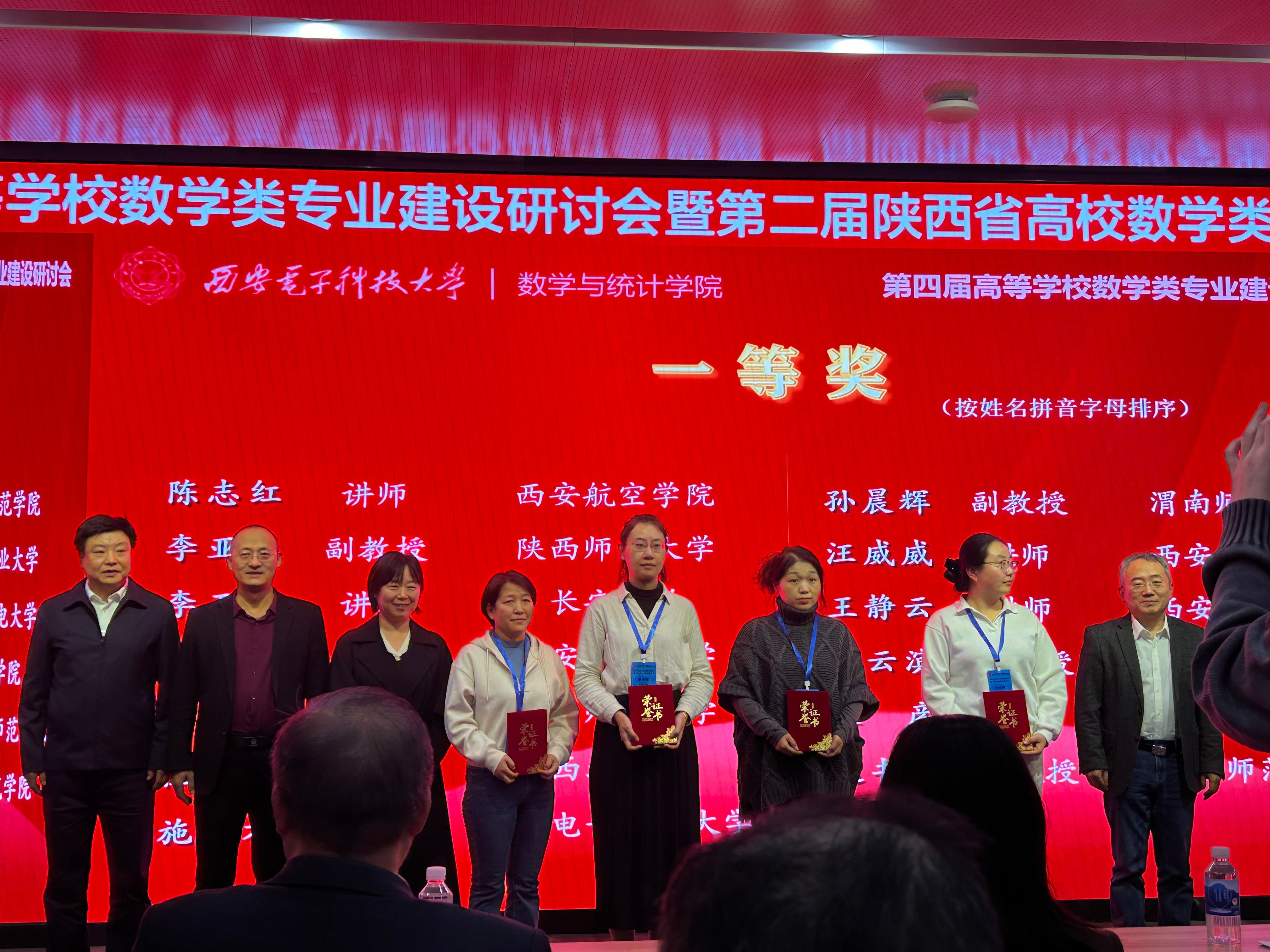 2024年11月2日第四届陕西省高等学校数学类专业建设研讨会暨第二届陕西省高校数学类专业课堂教学竞赛颁奖仪式在西安电子科技大学顺利举行。Beat365中文官方网站院长李小光等一行6人参加了第四届陕西省高等学校数学类专业建设研讨会,期间举行了第二届陕西省高校数学类专业课堂教学竞赛颁奖仪式,Beat365中文官方网站教师陈志红博士荣获教学竞赛一等奖。