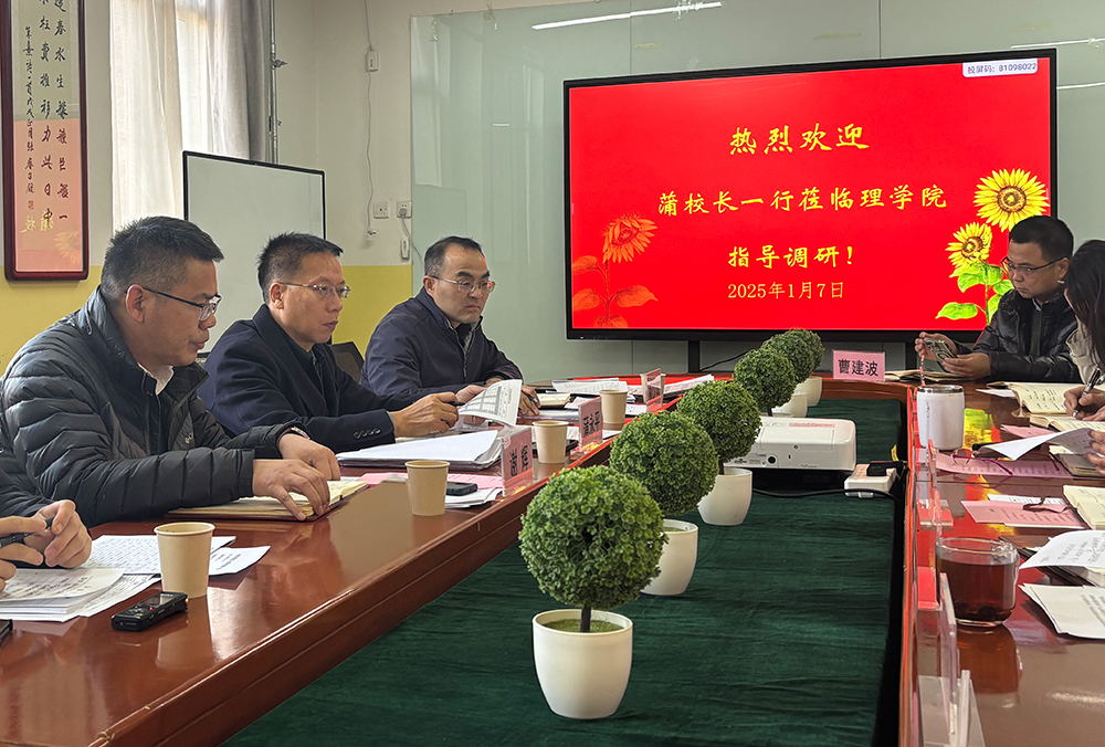 1月7日下午,校长蒲永平莅临Beat365中文官方网站调研指导工作,发展规划处处长杨少斌、教务处处长谢辉等陪同调研。全体院领导、科室主任、专业负责人和近三年引进的博士教师参加了调研座谈。会上,蒲永平听取了学院负责人关于学院各方面工作情况的汇报,并与在座的人员进行了深入交流。