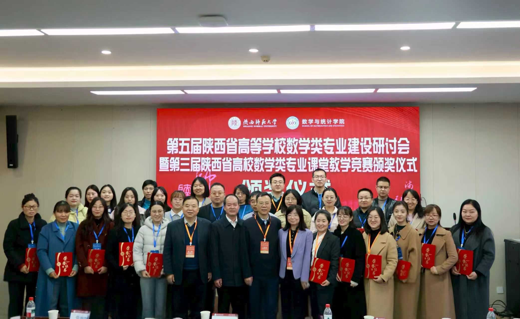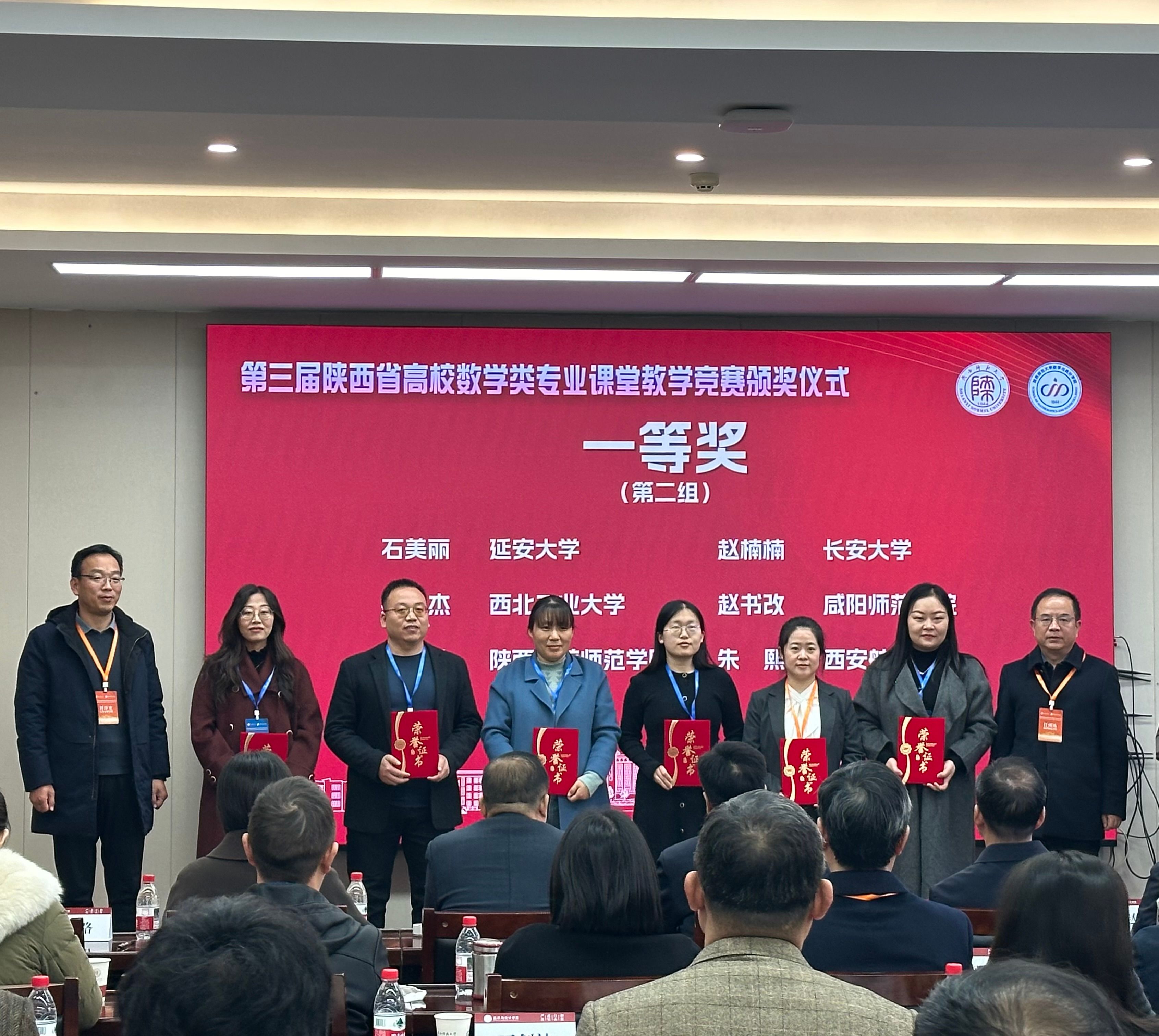 2025年12月7日,第三届陕西省高校数学类专业课堂教学竞赛颁奖仪式在陕西师范大学举行,Beat365官网教师朱熙讲授的《高等数学》课程、任炯讲授的《概率论与数理统计》课程分别斩获一等奖和二等奖。