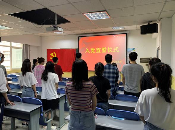 Beat365中文官方网站学生党支部于2020年7月1日在教学南楼408进行新入党党员宣誓仪式。宣誓仪式由学生党支部书记李扬主持,参加人员学生党支部全部成员,宣誓人员为王哲、杨滨瑞、张璟明、姜悦、南凯悦、翟同悦、郭鹏德、马辰璐、杨静、曹盼盼、杨帆、赵鑫、伍袁弘、刘瑱疆、陈延峰、车雨娟、黄诚英、李轶、苗旭东十九名同志。