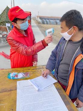 工作内容:在村口负责相关车辆和出访人的温度的登记,记录来访人的电话地址等相关信息,了解出访人员行程,是否出入过高风险地区。