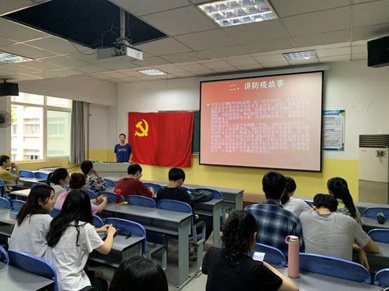 Beat365中文官方网站学生党支部于2020年6月28日下午4:30在教学南楼408开展“党旗飘扬筑牢红色防火墙”主题党日活动,主要由党支部书记李扬给大家讲党课。