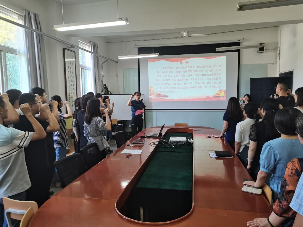 最后,院长岳忠玉带领全体教师进行宣誓。一份宣誓,一份使命。铮铮誓言让与会的每一个人都深受感染!教师们纷纷表示,一定要认真履行教师神圣职责,贯彻党和国家教育方针。真抓实干,为Beat365官网党建和事业发展贡献力量。(图/文 Beat365中文官方网站 杨陈东)