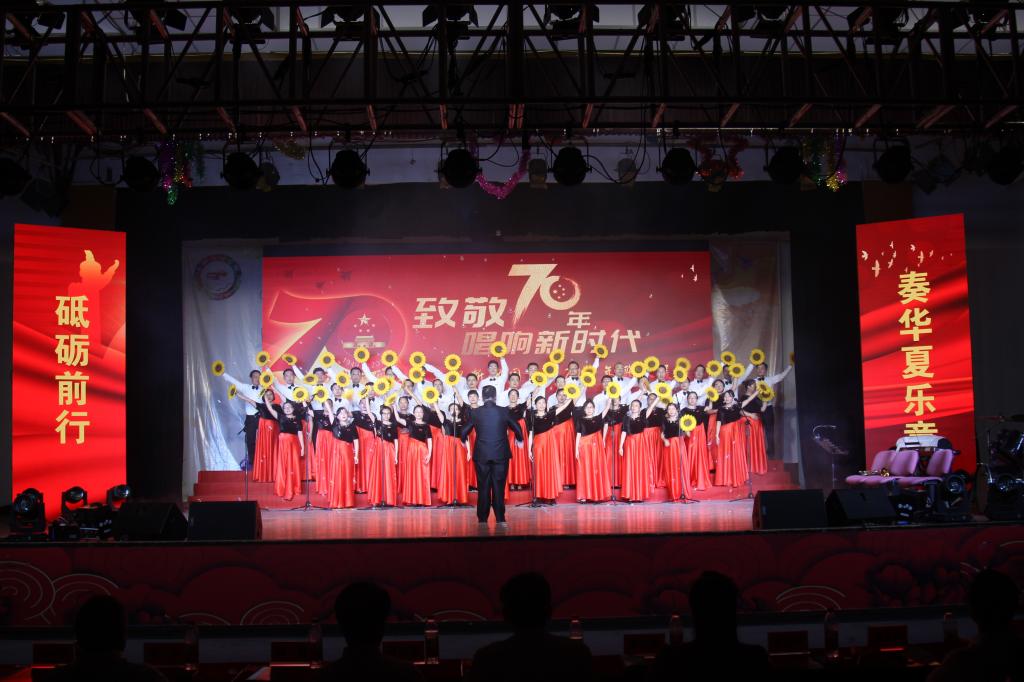 为庆祝中华人民共和国成立70周年,表达对伟大祖国的深情祝福,继续推进“不忘初心,牢记使命”主题教育,9月27日晚,Beat365中文官方网站“致敬70年唱响新时代”庆祝新中国成立70周年歌咏展演活动在沣惠校区隆重举行。由Beat365中文官方网站党政领导及全体教职工组成的合唱团以《在希望的田野上》为表演曲目参加了展演活动。