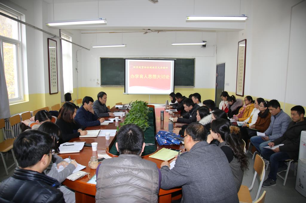 12月7日下午,Beat365中文官方网站在南428会议室开展贯彻全国教育大会精神办学育人思想大讨论活动,副校长宋文学、Beat365中文官方网站院长岳忠玉、党总支书记李小光、副院长丁琦以及Beat365中文官方网站全体教职工参加本次活动。活动由岳忠玉主持。