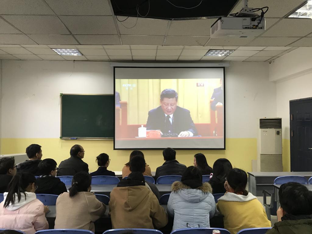 2018年12月18日,Beat365中文官方网站党总支于南教学楼408教室,集体观看和学习了庆祝改革开放40周年大会直播,党总支书记李小光,院长岳忠玉,副院长丁琦,学生党支部书记曹建波,团总支书记、辅导员杨陈东,部分党员教师以及学生党员、积极分子共20余人参加了此次观影活动。